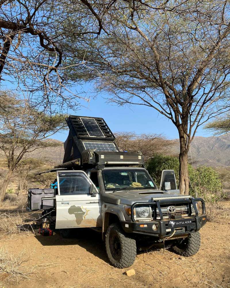 Nyati, meaning “Buffalo” in Kiswahili, is the first car we started equipping for off-road expeditions and remains very close to our hearts. It is Vincent and Linaโ€™s personal expedition car โ€” a Landcruiser Double Cab LC 79 โ€” and is truly considered Vincentโ€™s pride.