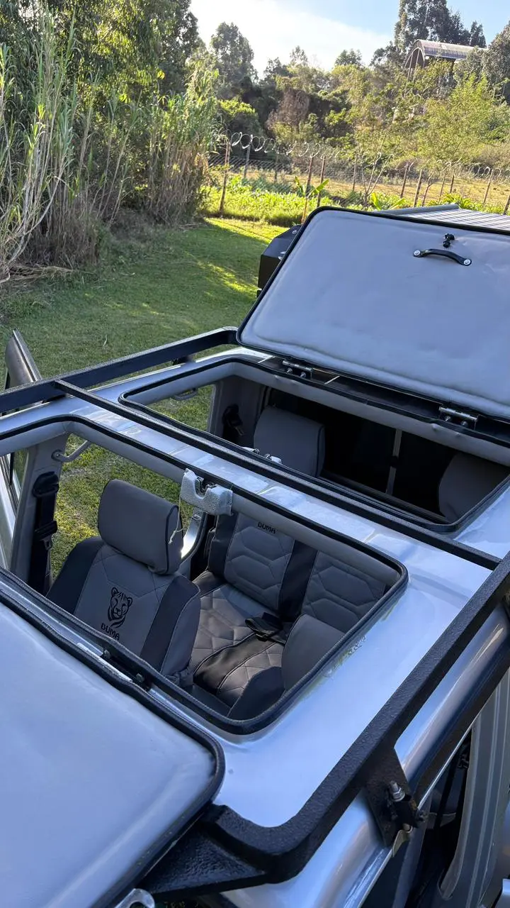 A fully equipped manual-gear 4ร4 self-drive safari vehicle, Duma has been purposefully rebuilt for ultimate overland independence. With a rooftop tent, water and shower system, generous storage facilities, fridge, and all essential expedition fittings, Duma gives you complete self-sufficiency wherever the journey leads. The vehicle includes a roof hatch, and when only one rooftop tent is chosen, or none at all, the hatch can be used for an elevated, immersive game-viewing experience.